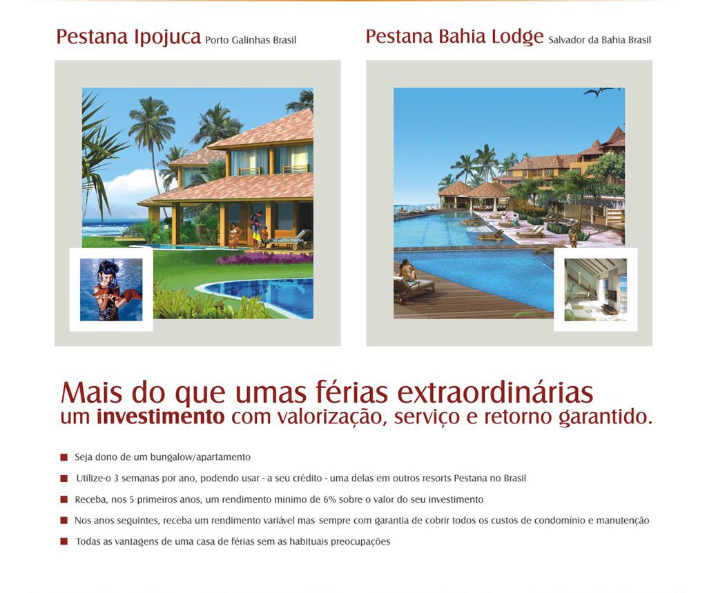 Empreendimento discutido e criado para ser um Negocio Imobiliário com renda garantida, com características de um Apart Hotel de Luxo com serviços Hoteleiros personalizados e garantia de rentabilidade por 05 anos, além de possibilidade de intercambio de hospedagem com a Rede Mundial Pestana.