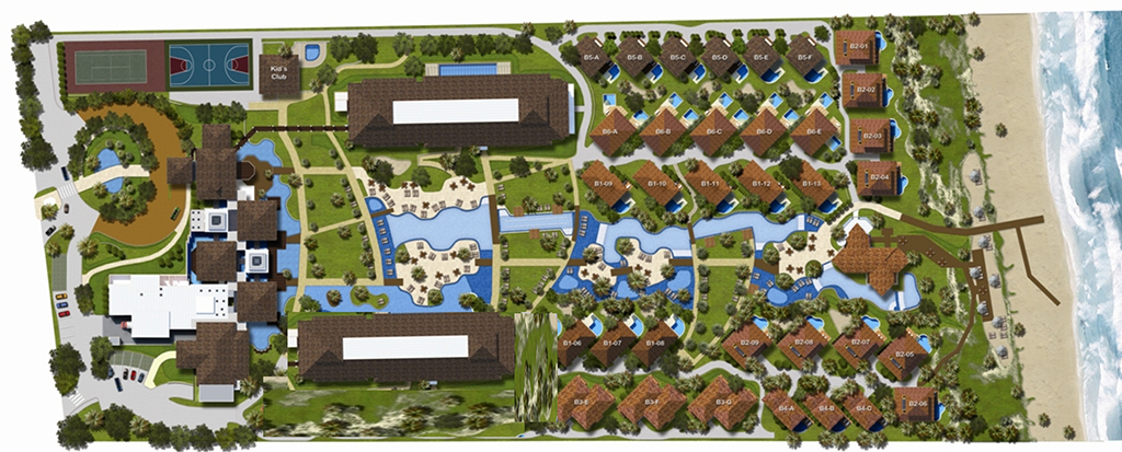Empreendimento com com 66 Studios de 30 m², 38 Bungallows de tipologias 02 e 03 Suites variando de 75 a 180 m² Área de Lazer integrada a parque aquático,Restaurante, SPA, Fitness,